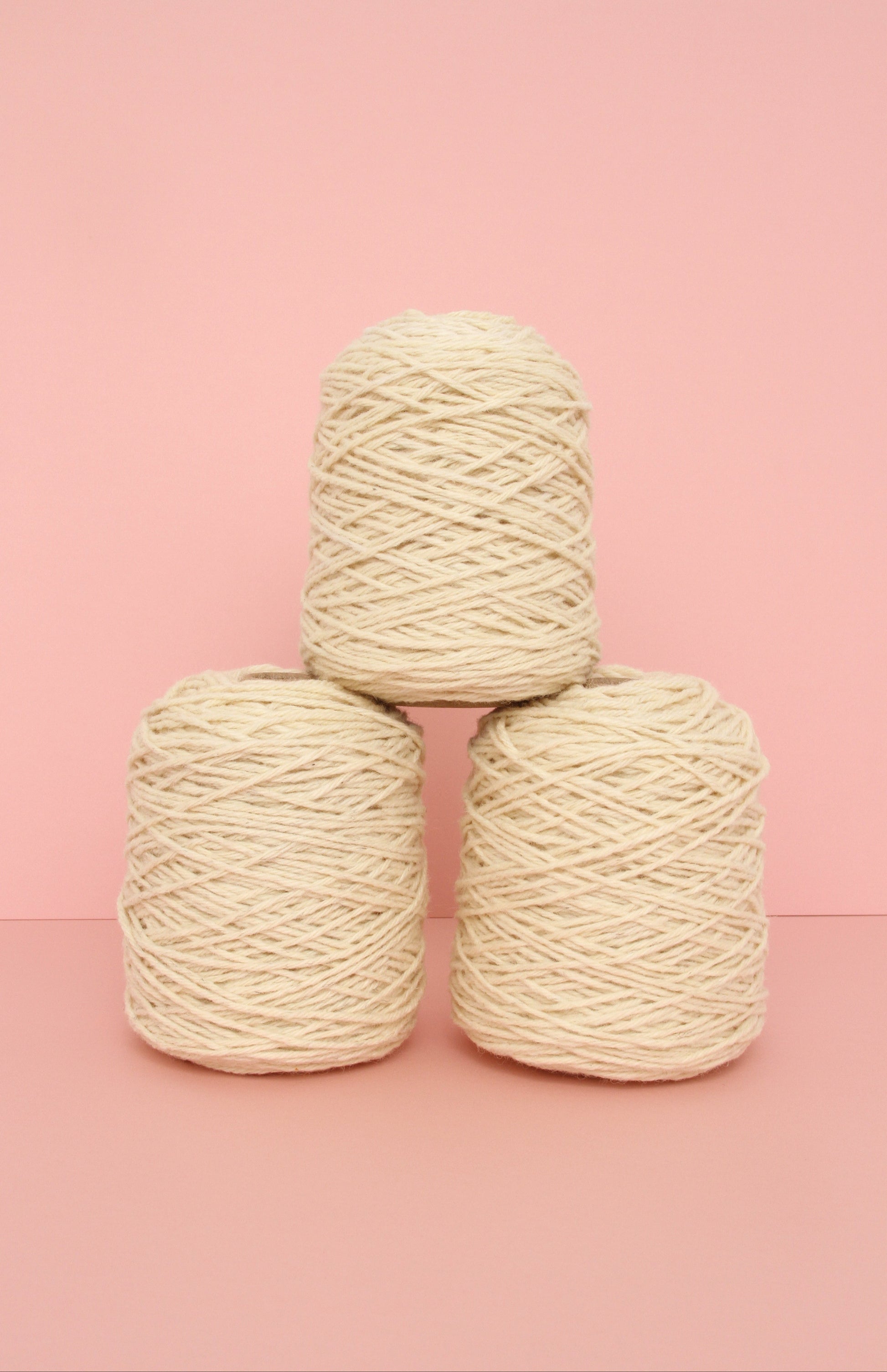 The wool fibre is certified organic and sourced from an organic farm in Devon, England from Charollais x Lleyn ewes. Also available in 200g cone